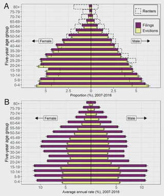 Millions of American renter households every year are threatened with eviction, an event associated with severe negative impacts on health and economic well-being. Yet we know little about the characteristics of individuals living in these households. Here, we link 38 million eviction court cases to US Census Bureau data to show that 7.6 million people, including 2.9 million children, faced the threat of eviction each year between 2007 and 2016. Overall, adult renters living with at least one child in their home were threatened with eviction at an annual rate of 10.4%, twice that of adults without children (5.0%). We demonstrate not only that the average evicted household includes one child, but that the most common age to experience eviction in America is during childhood. We also find that previous studies have underestimated racial disparities in eviction risk. Despite making up only 18.6% of all renters, Black Americans account for 51.1% of those affected by eviction filings and 43.4% of those evicted. Roughly one in five Black Americans living in a renter household is threatened with eviction annually, while one in ten is evicted. Black–White disparities persist across levels of income and vary by state. In providing the most comprehensive description to date of the population of US renters facing eviction, our study reveals a significant undercount of individuals impacted by eviction and motivates policies designed to stabilize housing for children and families.